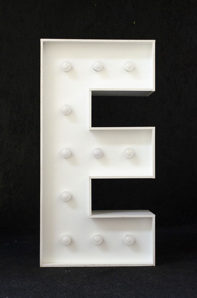 Písmeno E – svíticí dekorace LED s žárovkami na akce a svatby