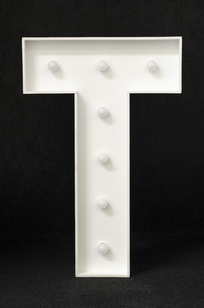 Písmeno T – svíticí dekorace LED s žárovkami na akce a svatby