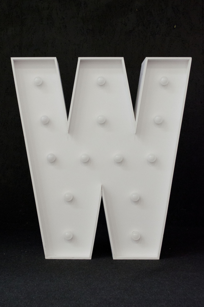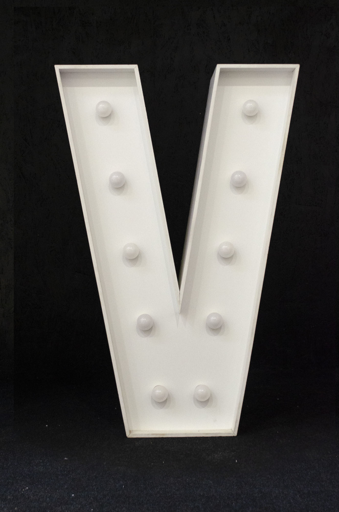 Písmeno V – svíticí dekorace LED s žárovkami na akce a svatby